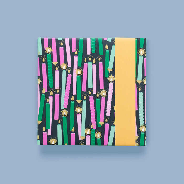 Aan de ene kant pronkt een zachte, effen perzik kleur die een warme en elegante sfeer uitstraalt. Aan de andere kant vind je een speelse print van kleurrijke kaarsen, die een vleugje vrolijkheid en creativiteit toevoegt aan je cadeaus.