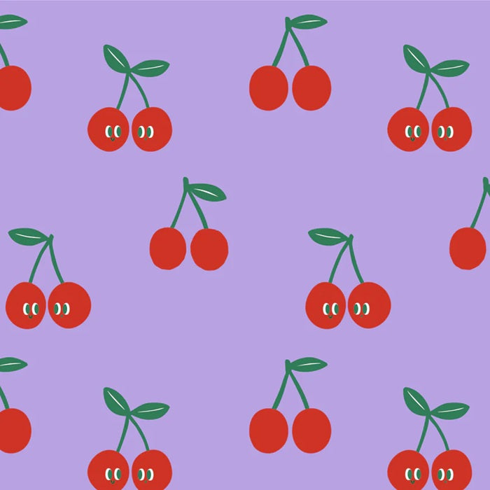 Pak je cadeautjes in met een vleugje zoetigheid! Dit lila inpakpapier, bezaaid met schattige kersjes, is een ontwerp van Anne Pascal (bekend om haar speelse en elegante stijl). Perfect voor wie van kleur én detail houdt.