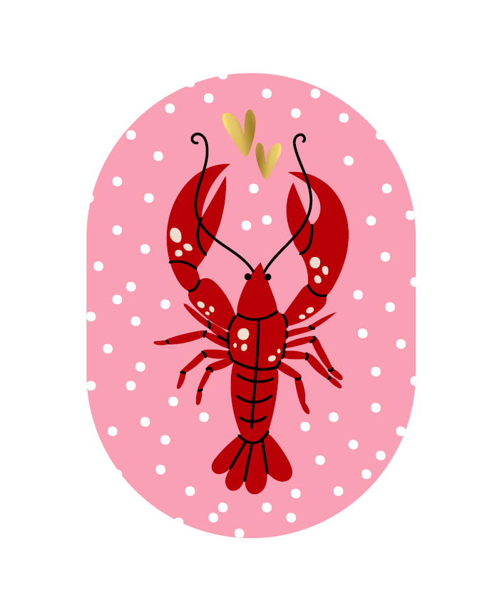 Deze ovale kaart met een zachte roze achtergrond en een vrolijke kreeft met twee hartjes is perfect om iemand even te laten weten dat je aan ze denkt. Of het nu gaat om een verjaardag, bedankje of gewoon zomaar: deze kaart brengt gegarandeerd een beetje liefde en humor in de brievenbus.