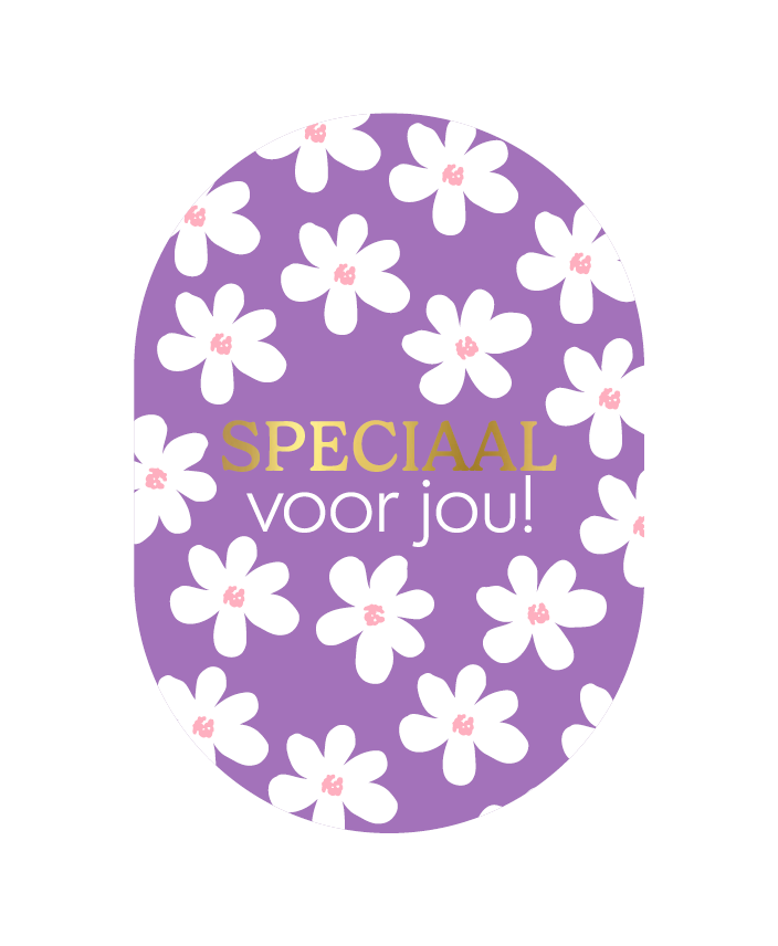Soms wil je gewoon even zeggen: jij bent bijzonder. Deze lieve ovale kaart met een zachte paarse achtergrond en witte bloemetjes brengt dat gevoel perfect over. Een klein gebaar dat groot aanvoelt, om te sturen naar iemand die wat extra liefde, steun of glimlach kan gebruiken.