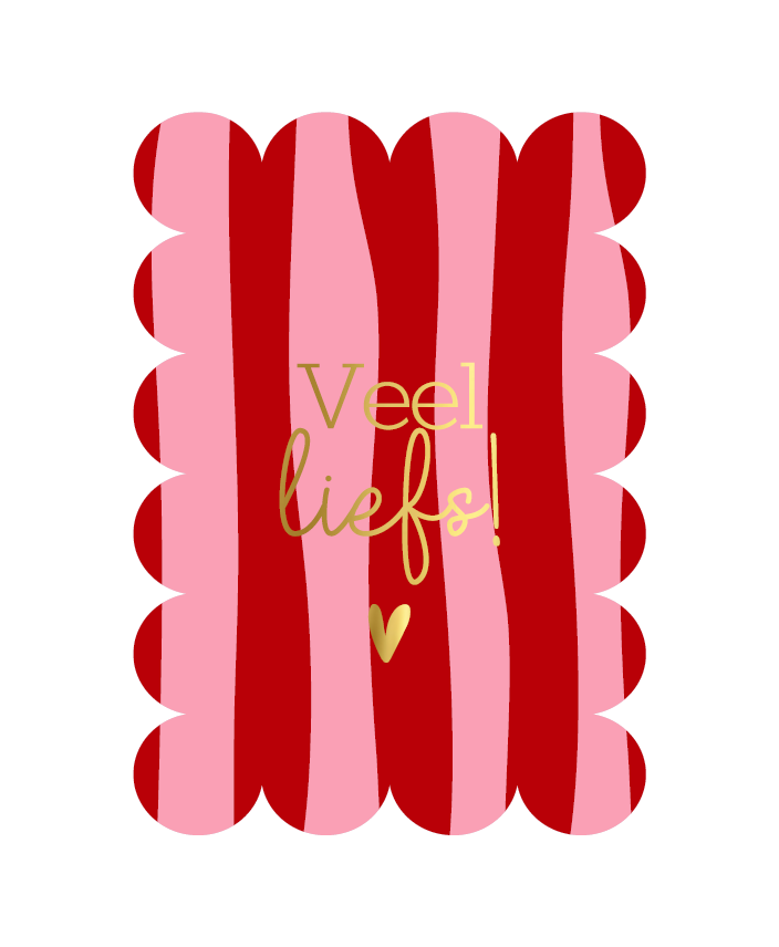 Laat iemand weten hoeveel ze voor je betekenen met deze eenvoudige, maar hartverwarmende "Veel liefs" wenskaart. Het minimalistische ontwerp en de speelse schulprand geven de kaart een unieke uitstraling die perfect past bij elke gelegenheid waarbij je je liefde, waardering of vriendschap wilt uiten. Of het nu voor een verjaardag is, een bedankje of gewoon om iemand een fijne dag te wensen, deze kaart brengt altijd de juiste boodschap over.